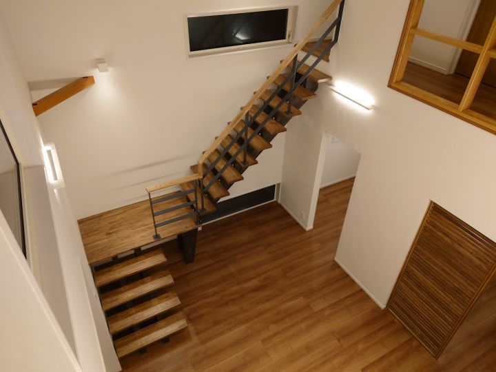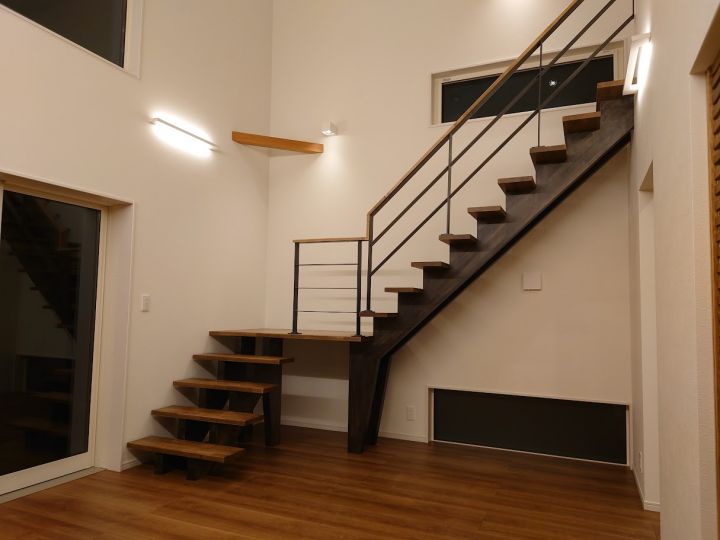 子どもの動線もわかりやすいリビングにあるストリップ階段!