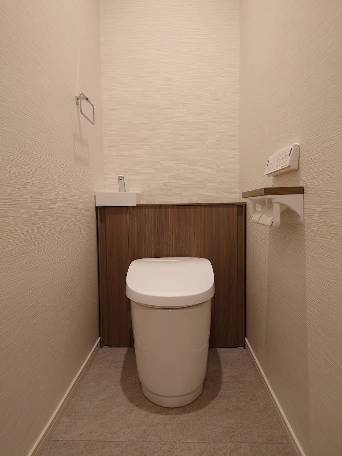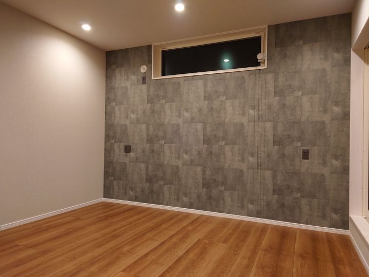 リビングの一部やトイレの一部の壁にデザインタイルを施工し、