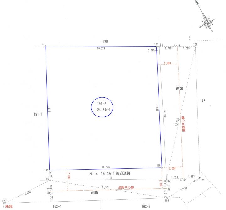 | 接道状況 | ・南側約2mの公道に約10.7m接道する ・東側約3.4mの公道に約11.5m接道する ※セットバック済 |
