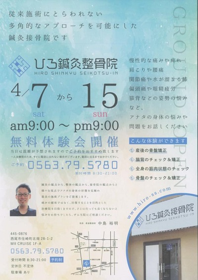 2018.04.04『ひろ鍼灸整骨院様』4月7日(土)OPEN!