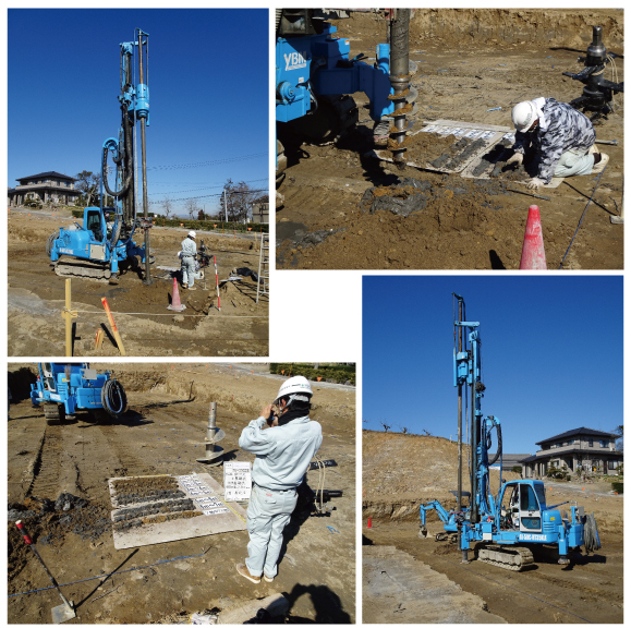この工事は、1本1本、地中内の支持層まで丁寧に施工していきます。