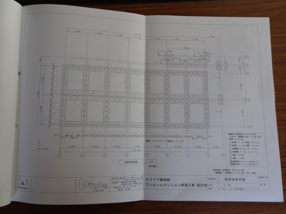 地盤補強工事(柱状改良工事)の図面です。