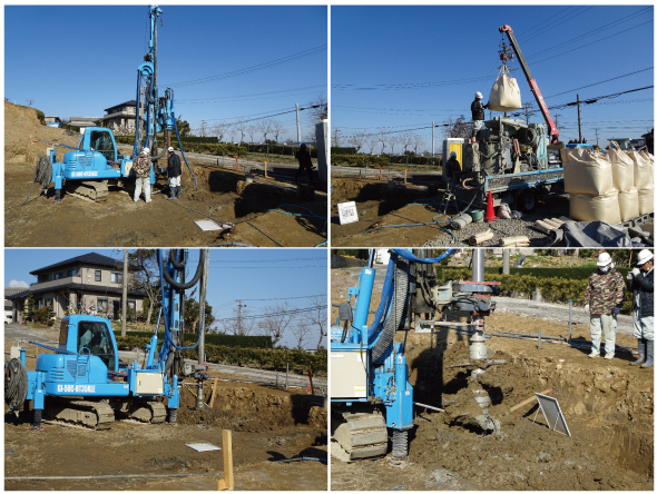 地盤補強工事(柱状改良工事)。