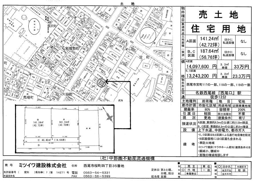 ■設備:上下水道・中部電力・都市ガス ■取引態様:代理